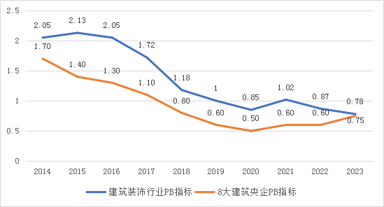 同时,八家上市建筑央企的相对市值较行业水平偏低,且均处于10年间较低水平。近十年间八大建筑央企平均PE指标长期低于A股建筑平均PE指标,PB指标也体现了类似结论。八大建筑央企各家的PE基本在10以下, PB 倍数均小于1,位于10年间较低分位,且均处于破净状态。