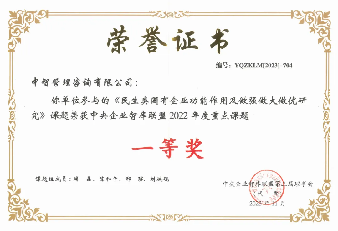 此次课题研究成果得到了国务院国资委的重视和各方评审专家的认可和充分肯定。同时,也代表了中智咨询服务国资国企高质量发展的智库能力和专业实力。