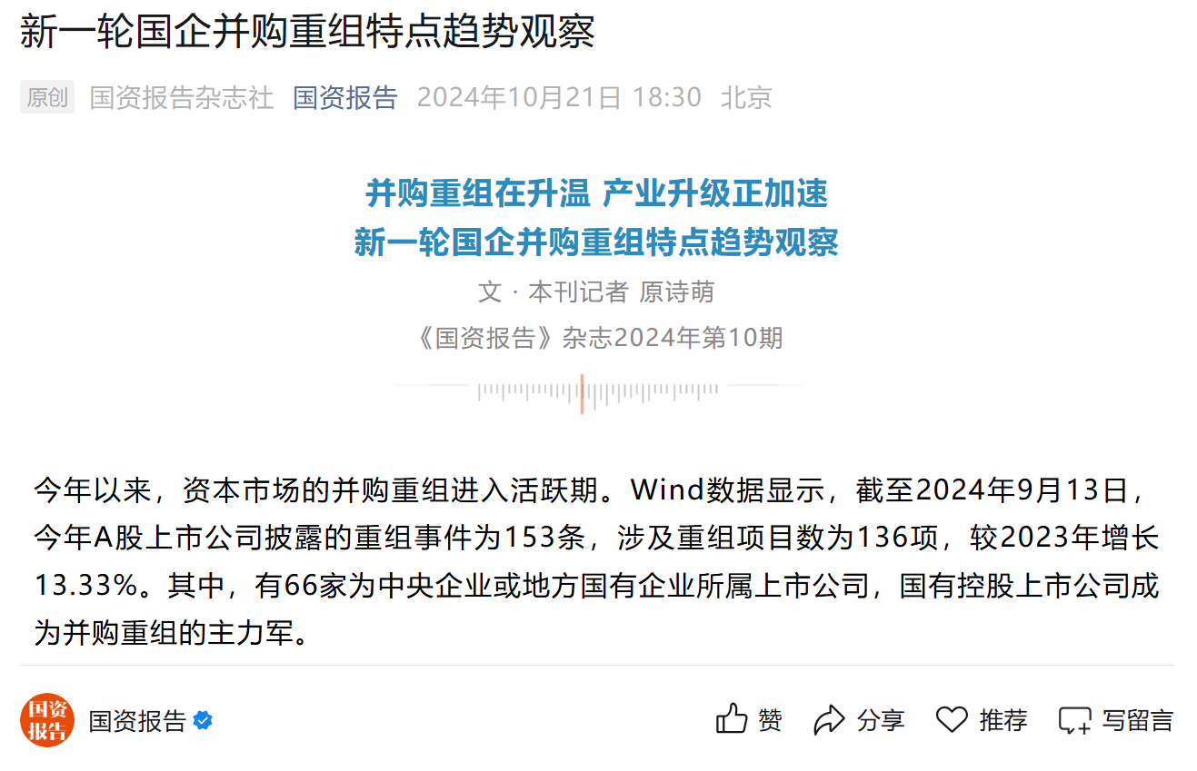 国企把握政策契机,通过并购重组补强短板、整合产业链、提升核心竞争力,在此过程中,也呈现出了新的特点和变化。