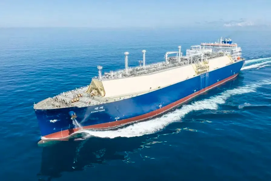 2024年9月26日,沪东中华造船(集团)有限公司为中远海运中石油国事LNG运输项目二期建造的第3艘17.4万立方米大型液化天然气(LNG)运输船“崆峒”号提前六个月命名交付