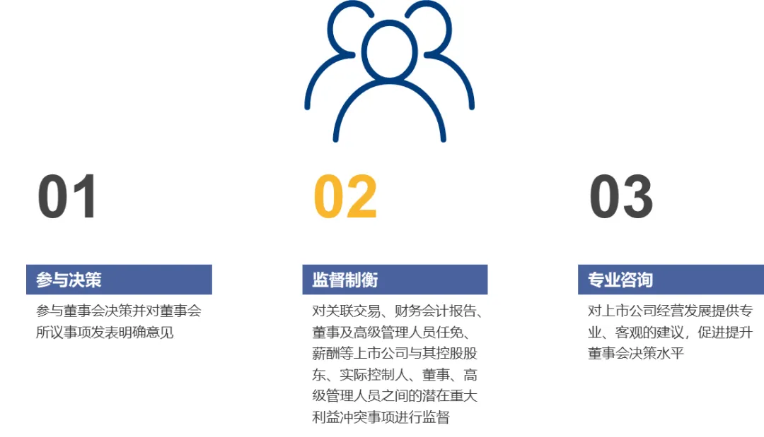 由此可见,参与决策、监督制衡、专业咨询是履行独立董事工作角色的三项核心职责。