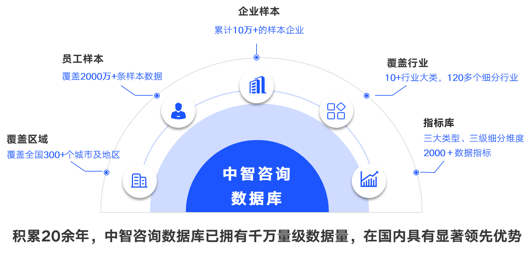 中智咨询拥有超20年的调研与数据服务经验,积累形成千万量级数据量的数据库,包括企业经营数据、人力资源数据和人才数据,尤其是在人力资本调研和数据服务领域,具有显著的领先优势。