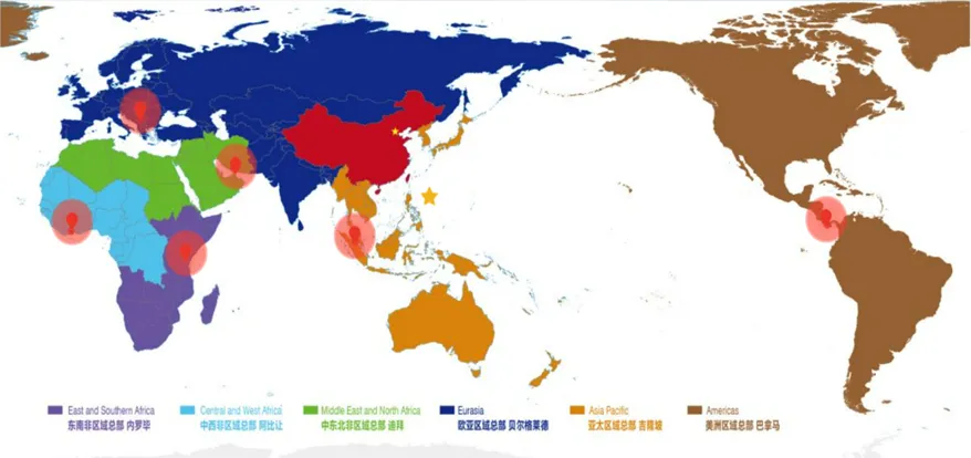 在市场布局方面,XX国际将全球国别市场划分为东南非、中西非、中东北非、欧亚、亚太、美洲六大区域,实现业务的全面覆盖。在区域总部的设立上,XX国际改变了传统的从总部辐射全球的做法,直接将六大区域总部设立在海外,由六大区域在前方直接辐射相关区域,贴近市场,靠前指挥。