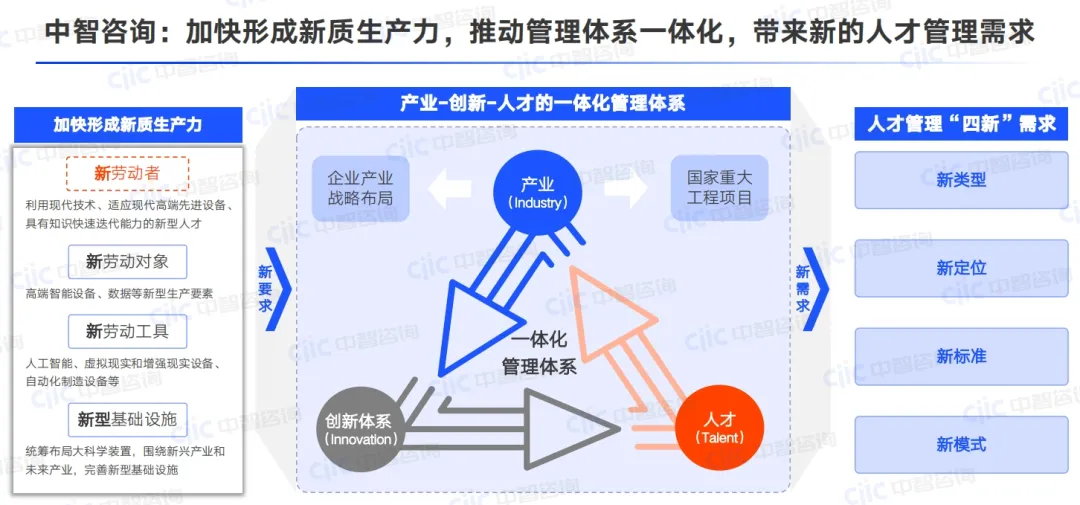 对于国央企而言,加快形成新质生产力,推动“产业—创新—人才”一体化管理体系建设,带来了“四新”人才管理需求。