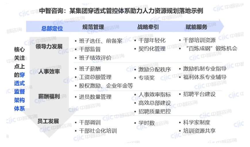 某集团基于价值型总部定位,以核心关注点穿透式监督架构体系,实现人力资源规划的顺畅落实。