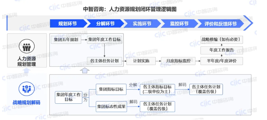 从预测人力需求,到结合企业战略制定适配规划,再到有序推进实施并进行全程监控,最后基于实际效果开展全面评估与及时反馈,各环节紧密衔接、环环相扣,在不断循环中实现持续优化。
