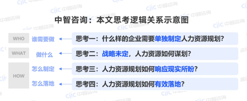 在理解人力资源规划理论层面的意义基础上,中智咨询认为,规划的制定和侧重点还应该充分考虑企业在规模、层级、定位以及人力资源体系完善程度和管理水平等方面的差异。
