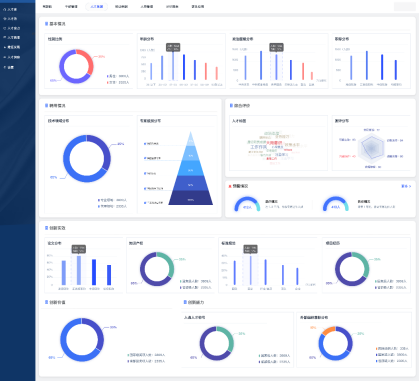 案例:某大型集团对其关键人才队伍相关数据进行深度分析,使用近20项多维度人才健康度评价指标,每项指标按照不同侧重进行权重分配,形成集团及近百家二级企业关键人才队伍的健康度评估分数。同步设计实现了服务于集团决策层的人才看板智能应用,将关键人才队伍的健康度评估分数进行智能化、可视化展现,通过三层界面“由面到点”地展示该集团型企业各省市企业的人才数量、整体人才健康度分数排名、各产业板块内人才健康度分数排名以及与集团“十四五”要求之间的差距等具体信息。切实有效地发挥了人力资源数据最大效能,基于高质量数据进行多维度分析,最终赋能集团决策层明确人才发展现状,并为未来人才队伍发展提供有力决策支持。