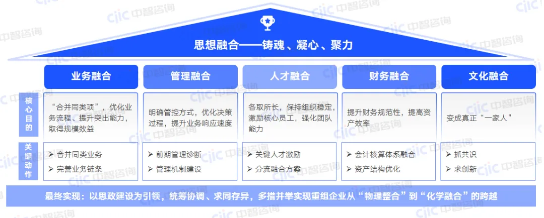在合并重组后,需尽快围绕各被重组方主责主业和发展战略,明确整合核心目的,制定重组企业的使命愿景,塑造目标感染力。