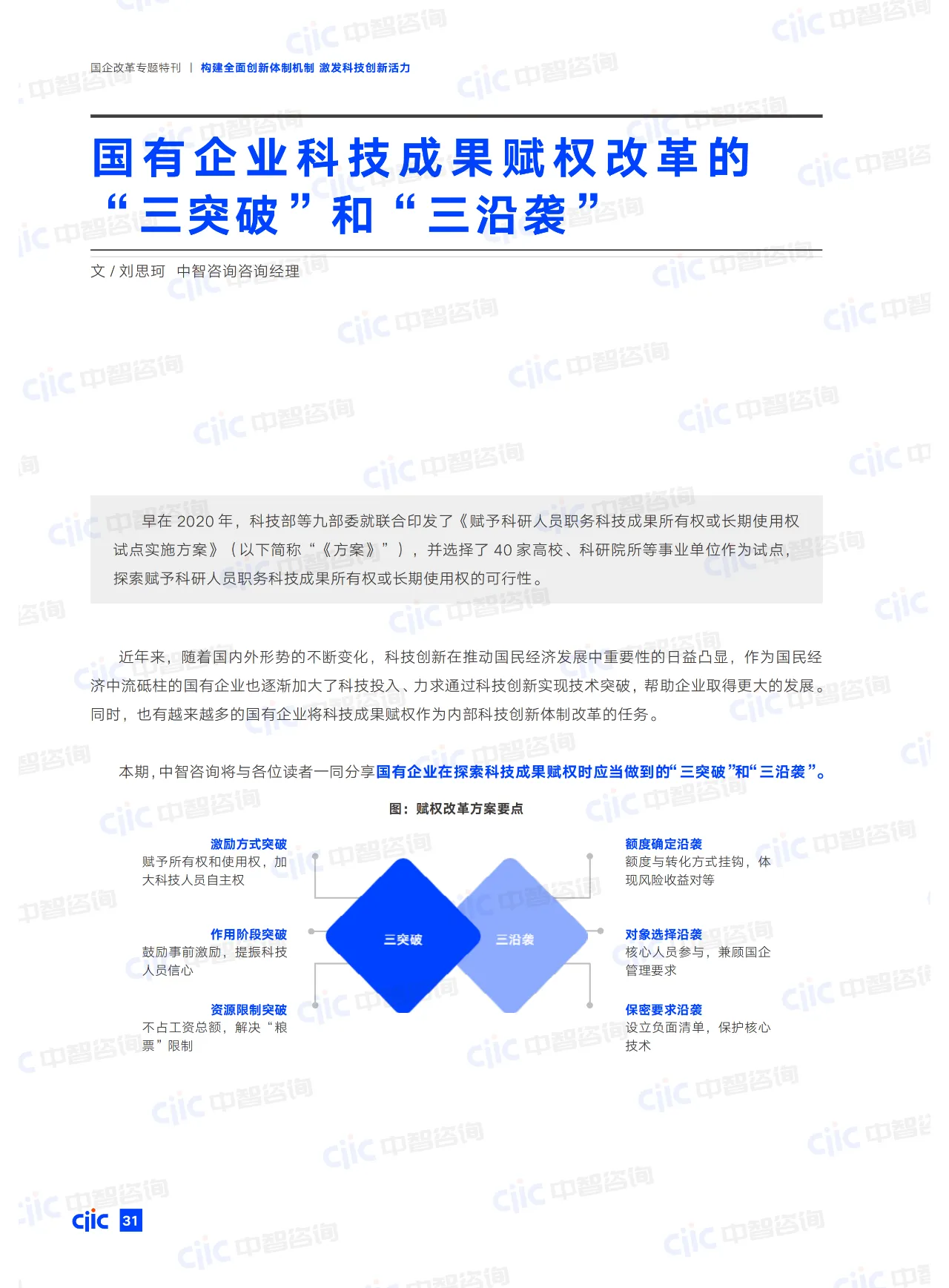 · 国有企业科技成果赋权改革的“三突破”和“三沿袭”
