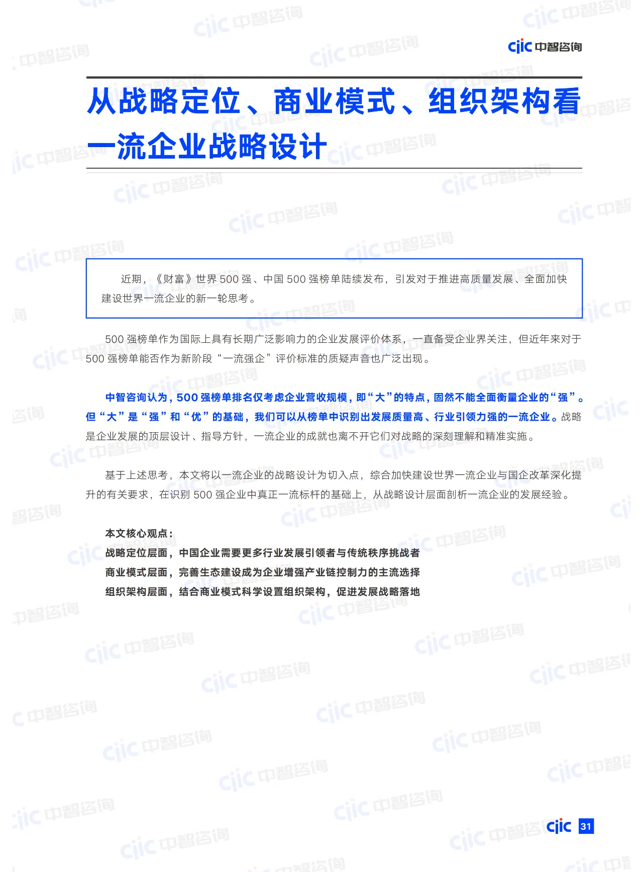 · 从战略定位、商业模式、组织架构看一流企业战略设计